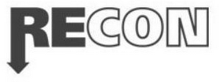 - DM0000: The mark consists of the stylized word "RECON" in upper case font with the left end of the "R" comprised of a downward-pointing arrow.