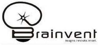 DM0000: The mark consists of the word "Brainvent." The letter "B" is semi open on the top left part and forms a semi open oval shape with a small circle at the end of the line and a star like shape surrounding the circle. Underneath the letter "B" there is a shaded semicircle. All the elements surrounding the letter "B" appear as a light bulb. The elements on the top part of the letter "B" could also appear as a brain shape. Underneath the word "Brainvent" appears in the right side the words "Imagine. Innovate. Invent."