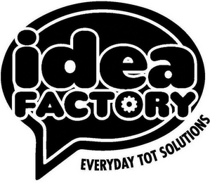 DM0000: The mark consists of the words "IDEA FACTORY" in a quote bubble with the words "EVERYDAY TOT SOLUTIONS" on the lower outside of the bubble. A cog design appears within the letter "O" in the term "FACTORY".