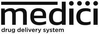 DM0000: The mark consists of the word "MEDICI" over the words "DRUG DELIVERY SYSTEM," all in lowercase letters. There is a horizontal bar over the "M" and "E" and there are four dots over the letters "ICI" in the word "MEDICI." The words "DRUG DELIVERY SYSTEM" run under the letters "MED" in the word "MEDICI".
