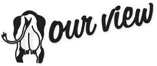 - DM0000: The mark consists of the stylized words "OUR" and "VIEW" appearing adjacent to a rear view of a dairy cow.