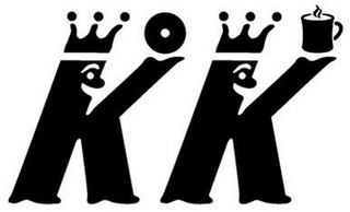 - DM0000: The mark consists of the letters "KK" in stylized form depicted as marching characters that include facial features with a crown above the left stem of each letter and a doughnut above the right stem of the first letter and a steaming coffee mug above the right stem of the second letter.