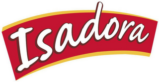 - DM0000: The mark consists of a red banner shape with yellow edging on the top and the bottom of the banner. Inside the banner is the term "ISADORA" in stylized white font.