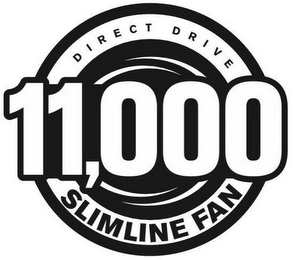 DM0000: The mark consists of the number "11,000" superimposed over concerntric circles, with curved line segments above and below the number, with the words "DIRECT DRIVE" in the portion of the ring above the number, and the words "SLIMLINE FAN" in the portion of the ring below the number.