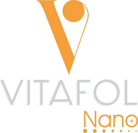 - DM0000: The mark consists of the letter "V" in a stylized orange letter over a the wording "VITAFOL" in stylized gray letters with a lighter gray shadow, below the wording "NANO" appears in stylized orange letters, inside the "O" a small orange dot appears and below the wording "NANO" seven orange dots appear decreasing in size from left to right. The color white represents background or transparent areas and is not claimed as a feature of the mark.