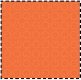- DM0000: The mark consists of a repeating pattern of stylized lettering "GO" in light orange repeating horizontally and vertically in a checkerboard pattern, with an orange background. The dotted lines indicate the shape of the items to which the mark is applied and are not a part of the mark.