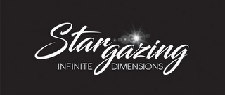 DM0000: The mark consists of the stylized wording "STARGAZING INFINITE DIMENSIONS". The wording "STARGAZING" appears in a large font and a shooting star emerging from the letter "R" in the term "STARGAZING" extends to the right. Below the letters "STAR" in "STARGAZING" is the term "INFINITE" in a small font. Below the letters "GAZING" in "STARGAZING" is the term "DIMENSIONS" in a small font.