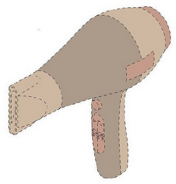 - DM0000: The mark consists of the colors Pantone 10136C, Pantone 13-1012TCX and HEX C59C8A as applied to hair dryers with the front nozzle area, rear portion and back handle in Pantone 10136C, center portion in Pantone 13-1012TCX, and the center name plate, controls, and rear vent in HEX C59C8A. The matter shown in broken lines shows positioning only and is not part of the mark.