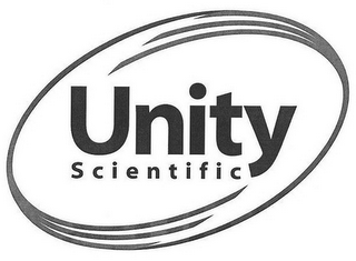 - DM0000: The mark consists of the word "UNITY" written in bold letters above the word "SCIENTIFIC" written in smaller letters all surrounded by an oblong figure made up of a line that splits into three lines on the top and on the bottom of the figure.