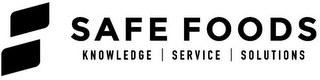 DM0000: The mark consists of two stacked stylized parallelograms with the words "SAFE FOODS" to their right, below which are the words "KNOWLEDGE SERVICE" and "SOLUTIONS" separated by vertical lines.