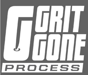 - DM0000: The mark consists of the unshaded words "GRIT GONE" in all capital letters, where the word "GRIT" is above the word "GONE". To the left of the wording "GRIT GONE" is an unshaded capital letter "G", with a representation of a pipe or a drain in the lower middle of the "G". The wording "G GRIT GONE" is all above the shaded word "PROCESS" in all capital letters, where the word "PROCESS" is enclosed in an unshaded rectangle. All of the wording and design elements are on a shaded background.
