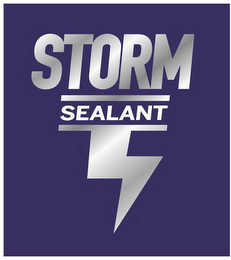 - DM0000: The mark consists of a blue portrait rectangle containing the word "STORM" above the word "SEALANT" with a line above and below the word "SEALANT", and a lightning bolt shape pointing down from the line below "SEALANT"; the colors white and gray are visible in the words "STORM", "SEALANT" and the lightning bolt giving the appearance of blended lines in the background.