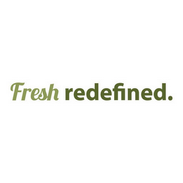 - DM0000: The mark consists of the word "FRESH" in script in the color light green and the word "redefined" followed by a period both in the color dark green.