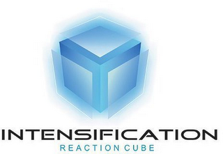 DM0000: The mark consists of the word "INTENSIFICATION" in black and beneath it the words "REACTION CUBE" in dark blue. Above the wording is an image of three squares forming a cube figure appearing in light blue and dark blue with the intersecting lines and outlines appearing in dark blue and white.