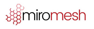 - DM0000: The mark consists of the word "miro" in black type followed by the word "mesh" in red type, preceded by a honey comb like design consisting of connected 10 complete hexagons and 7 partial hexagons in shades of red varying from light red at the top of the design to darker red at the bottom of the design.