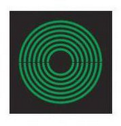 - DM0000: The mark consists of a design of a circle comprised of a black horizontal line centered across several plain line concentric circles, within the larger circle, with the circular lines in green and a solid black circle in the center, all on a black background.
