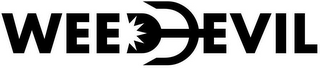 - DM0000: The mark consists of the wording "WEEDEVIL" where the letter "D" in the term "WEED" includes the design of a partial sun followed by an enlarged letter "U" that is positioned sideways with a horizontal line running from the letter "D" in the term "WEED" through the middle of the sideways "U" extending to the letter "E" in the term "EVIL".