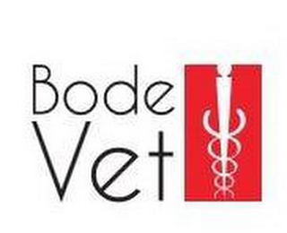 - DM0000: The mark consists of the wording "BODE" in black over the wording "VET" in black next to a red box with a caduceus design therein. The color white represents background and is not part of the mark.