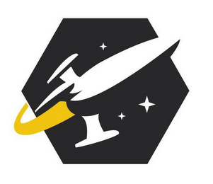 - DM0000: The mark consists of a rocket ship in black and white with three tail fins in black and white. The rocket ship is contained in a black hexagon with the cone of the rocket ship extending outside the hexagon and with yellow flames exiting the nozzle of the rocket ship and extending out of the hexagon. Three, four pointed stars in white are contained in the hexagon.