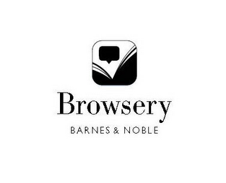 DM0000: The mark consists of a stylized empty thought or speech cloud with a stylized open book within a border over the words "BROWSERY" and "BARNES & NOBLE".