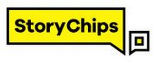 - DM0000: The mark consists of the following: a generally rectangular shaped pentagon in yellow with black outline and with words "StoryChips" in black inside therein, and a generally square shaped white pentagon outlined in black with a yellow square outlined in black inside therein, the generally square shaped pentagon is to the right of the generally rectangular shaped pentagon. Except as previously indicated, the color white represents background, outlining, shading, and/or transparent areas and is not part of the mark.