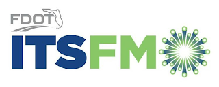 - DM0000: The mark consists of the capitalized letters "FDOT" in bold gray font. An artistic rendering of the State of Florida, in gray color, appears to the right of the letters. Below the letters is a two-lined arch that transitions from large to small, merges at the right, and leads to the lower portion of the state. Below the letters "FDOT" and stylized State of Florida, are the letters "ITS" in bold blue font and "FM" in bold green font. To the right of the letters "ITSFM" is a stylized sunburst with green and blue rays and a white center.