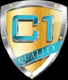 - DM0000: The mark consists of a gold shield with a silver border, with C1 on its face and and a teal banner with the word quality across its face, all on a black background.