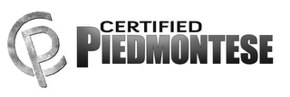 - DM0000: The mark consists of the stylized letters "C" and "P" to resemble a cattle brand with the letter "P" superimposed on the letter "C". The words "CERTIFIED PIEDMONTESE" appear to the right of the cattle brand.