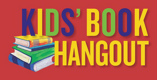 - DM0000: The mark consists of the words "KIDS' BOOK HANGOUT" with the word "KIDS'" consisting of a blue "K", a yellow "I", a green "D", a blue "S", and a green apostrophe, the word "BOOK" consisting of a yellow "B", a green "O", a blue "O", and a yellow "K" over the word "HANGOUT" in yellow letters, surrounding a stack of four books in yellow, blue, green, and blue with the page edges in the color white. The background is all in the color red