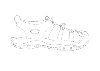 - DM0000: The mark consists of the three dimensional configuration of a sports sandal. Centered on the upper appears a patch in the shape of a surfboard with curved sides formed by a single line outlined by a stitched outline. The sports sandal appears in dotted lines and is not claimed as a feature of the mark.