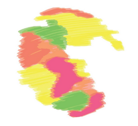 - DM0000: The mark consist of a stylized image of the Pangea supercontinent consisting of various amorphous shapes in the colors pink, orange, yellow and green.