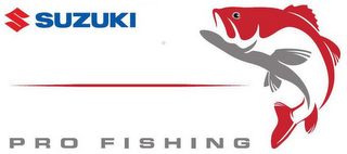 - DM0000: The mark consists of the red "S" logo and blue "Suzuki" logo on the upper left portion and a pictorial of a red and gray fish on the right, and the "PRO FISHING" in gray on the bottom.