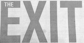- DM0000: The mark consists of the wording "THE EXIT" displayed vertically inside of an image of a rectangle. The word "EXIT" is in large font and the word "THE" is in smaller font and placed within the top center of the letter "E" in the word "EXIT".