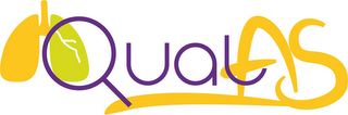 - DM0000: The mark consists of the wording "QualAS" in multiple stylized fonts. The letter "Q" forms a stylized illustration of a magnifying glass, and it is inspecting a pair of lungs. The portion of the right lung that is under the magnifying glass is colored green, and all other parts of the lungs are colored yellow. The wording "Qual" appears in a purple stylized font. The wording "AS" appears in a different, yellow stylized font. There is a yellow underline of the "QualAS" wording in the same yellow font as the "AS" wording. The color white represents transparent area and is not part of the mark.