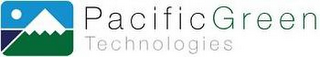 DM0000: The mark consists of a stylized image of a green mountain with a white snow cap in front of a dark blue ocean beneath a light blue sky with a white line separating the ocean and sky. In the sky is a white sun. To the right of the image is the wording "PACIFIC GREEN TECHNOLOGIES" with "PACIFIC" in black font, "GREEN" in green font and "TECHNOLOGIES" in gray font. All of the aforementioned is in front of a white background.