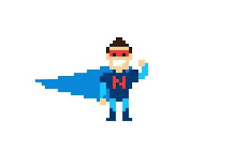 - DM0000: The mark consists of a stylized cartoon man in beige and with brown hair wearing a light blue cape, red mask with black eyes, white teeth, baby blue leotards, navy blue boots, and a navy blue body suit on which the letter "N" appears in red. The white background is not claimed as a feature of the mark.