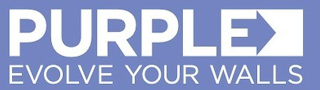 - DM0000: The mark consists of the stylized word "PURPLE" with an arrow design extending from the letter "E" into a rectangular design forming the shape of a house above the stylized wording "EVOLVE YOUR WALLS". The color white appears in the wording "PURPLE" and "EVOLVE YOUR WALLS" and in the rectangle design; and the color purple appears in the arrow design and as background to the entire mark.