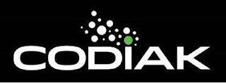 - DM0000: The mark consists of of the word "CODIAK", with 18 white dots of various sizes emanating from one green dot above the letter "I".