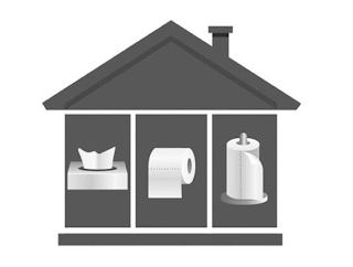 - DM0000: The mark consists of a shaded house design wherein, from left to right, a stylized tissue box design, toilet paper design, and paper towel roll design appear on three individual shaded rectangles within the house.
