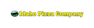 - DM0000: The mark consists of a black elk graphic with a background of green foliage, dark green trees, dark purple mountains, light purple mountains, and light blue sky all within a black outlined circle with the stylized words "Idaho Pizza Company" in yellow outlined in black to the right of the circle.