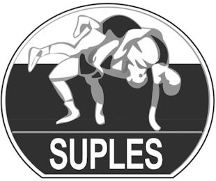 - DM0000: The mark consists of an oval with a straight side on the bottom. Various horizontal lines and bars appear in the background of the oval. Two men wrestling appear in the foreground of the oval above the word "SUPLES". The black square on which the foregoing appears is background and is not a feature of the mark.