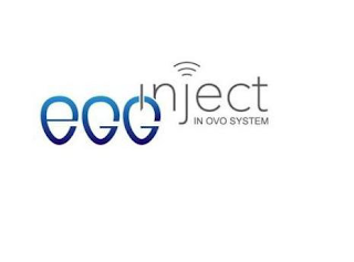 - DM0000: The mark consists of the terms "EGGINJECT IN OVO SYSTEM" with "EGGINJECT" in a stylized form and "IN OVO SYSTEM" in smaller font and in all cap letters. "EGG" in color blue and "INJECT" and "IN OVO SYSTEM" in color grey. The "I" of "INJECT" overlaps the "G" of "EGG" and the lower portion of the "N" of "INJECT" is behind the last "G" of "EGG". There are three curved lines on top of the letter "J" of "INJECT". The "IN OVO SYSTEM" of the trademark is situated below the term "INJECT" in all caps and smaller font than the other terms.