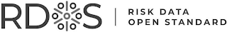 DM0000: The mark consists of stylized bolded letters "RDOS" with the letter "O" depicted as a design of small circles and lines around a small circle in the center, with the stacked wording "RISK DATA OPEN STANDARD" on the right.
