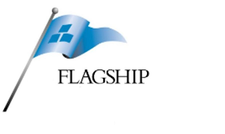 - DM0000: The mark consists of A three point triangle shaped flag colored medium blue next to a light gray flagpole and both rotated clockwise on a slight angle, the flag having three stacked dark blue squares toward the left and placed above the literal words flagship.