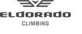 - DM0000: The mark consists of a small inverted triangle centered between a pair of wings that each appear as a large slanted letter "E". The design appears above the word "ELDORADO" in large stylized letters above the word "CLIMBING" which appears in smaller capital letters.