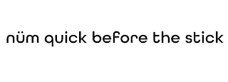 DM0000: The mark consists of the stylized representation of the terminology "num quick before the stick" depicted in lowercase lettering and where the letter "u" in the initial term "num" is formed by a stylized design of a happy face.