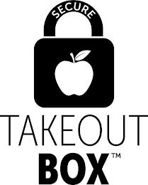 - DM0000: The mark consists of a lock image with an apple image superimposed over the lock image, the stylized word "SECURE" disposed on the lock image, and the stylized words "TAKEOUT" and "BOX" disposed beneath the lock image.