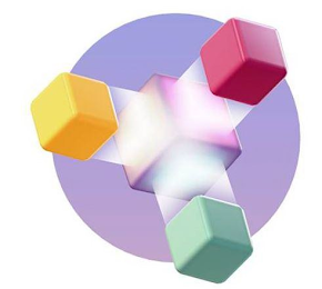 - DM0000: The mark consists of an arrangement of four cubes, with a purple cube in the center and with, clockwise from the upper left, yellow, red, and green cubes surrounding it, with white mist-like substance emanating from the center cube and extending to the other cubes. All cubes are placed over a purple circle background. The other white in the drawing represents background and is not a feature of the mark.