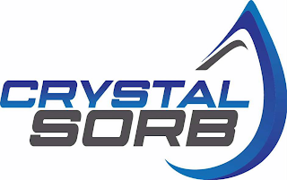 - DM0000: The mark consists of a teardrop shape having a partially open side in blue and gray next to the stylized wording "CRYSTAL" in blue and "SORB" in gray. The color white represents background, outlining, shading, and/or transparent area and is not part of the mark.