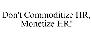 DON'T COMMODITIZE HR, MONETIZE HR!